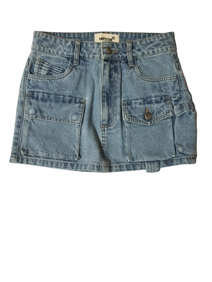 Saia jeans bolsos frontais
