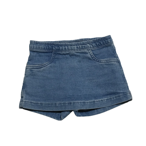 Saia jeans bolsos frontais